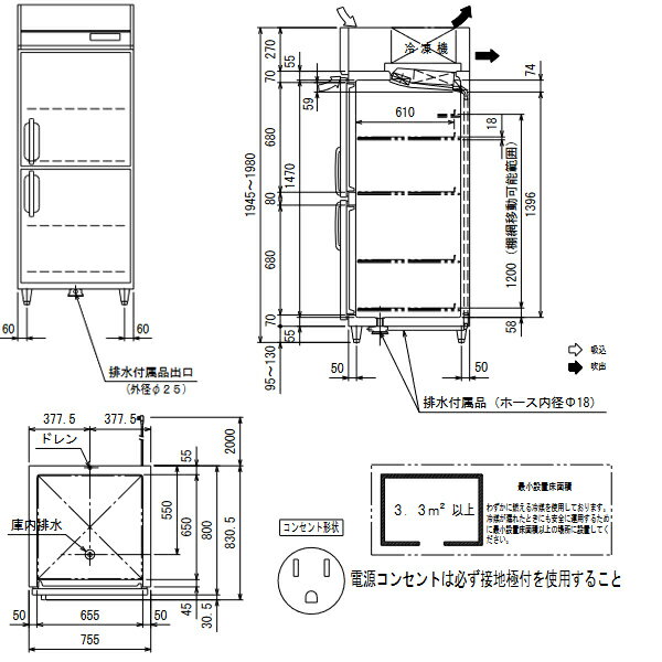 ●型タイプ:厚型●庫内:‐5〜10℃●有効内容積:649L●内装:内装ステンレス鋼板●電源:空冷単相100V●外形寸法:幅755×奥行800×高1950mm●製品質量:90kg●消費電力「50/60Hz」:冷却時 175/180W 霜取時 234W●カタログ掲載ページ:2012年暫定版 5メーカー希望小売価格はメーカーカタログに基づいて掲載しています【業冷SALE】●関連キーワード【冷蔵ショーケース 前開き 冷蔵庫 小型 冷蔵庫】※冷却装置のみ2年間(本体は1年間になります。